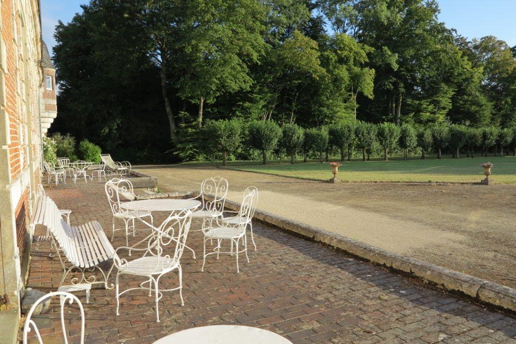 Une terrasse construite au 19ème siècle tout le long de cette façade orientée au midi et au soleil couchant dessert les pièces principales du rez-de-chaussée, dont elle est le prolongement naturel.