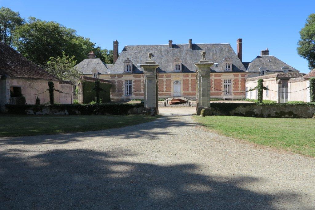 « Côté cour », le manoir est de style LouisXIII, murs de brique et de pierre, toit d'ardoise, un étage et des combles. Devant cette façade, une cour carrée, flanquée de deux pavillons 17ème siècle recouverts de tuiles, confère à cet ensemble une ordonnance classique. Au centre de cette cour se trouve une sculpture de Pierre Tual, la table du poète (1984).