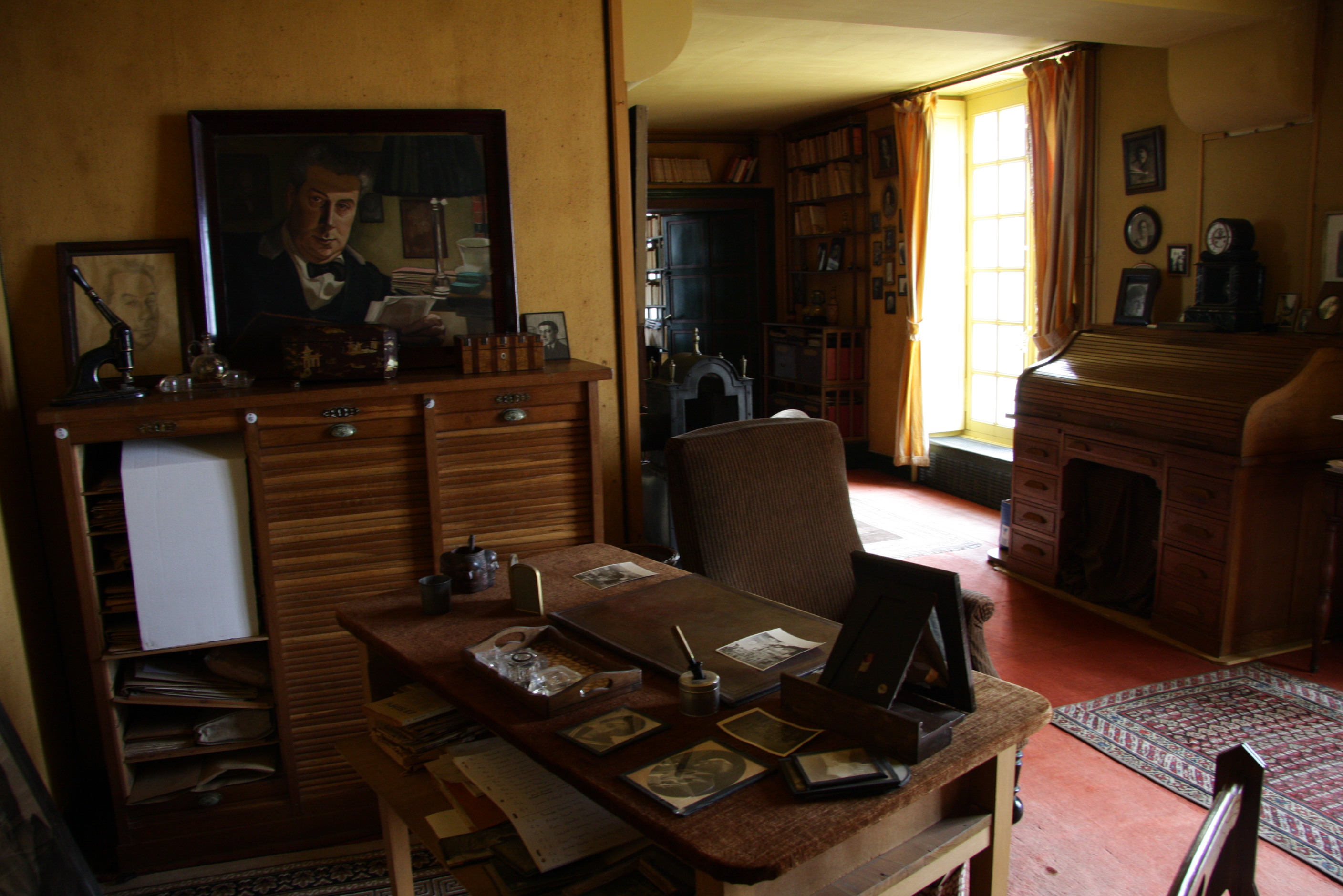 Le «centre de travail c'est le bureau», resté dans sa destination première, l'écriture. Comment ne pas évoquer ici Antoine ou Jacques Thibault, comment ne pas voir au mur les dizaines de portraits de ceux à qui Roger Martin du Gard envoyait d'innombrables lettres, et comment ne pas être sensible à l'atmosphère de cette pièce si personnelle, dont les fenêtres donnent sur le parc et la forêt de Bellême ?